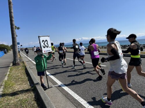 静岡マラソンの「Kmポスト表示」の奉仕活動を行いました