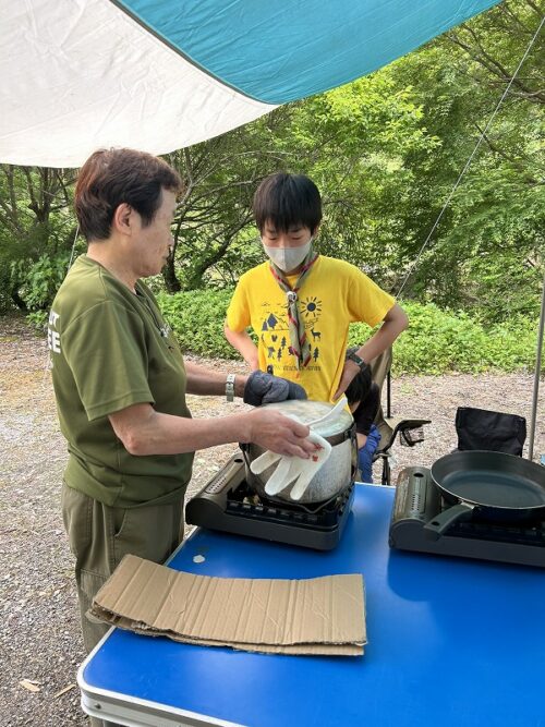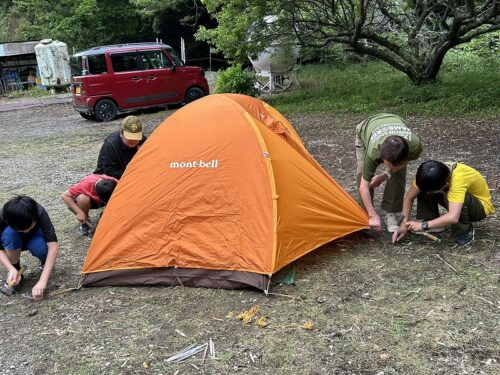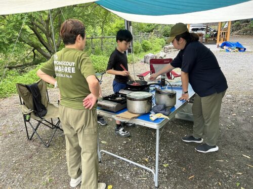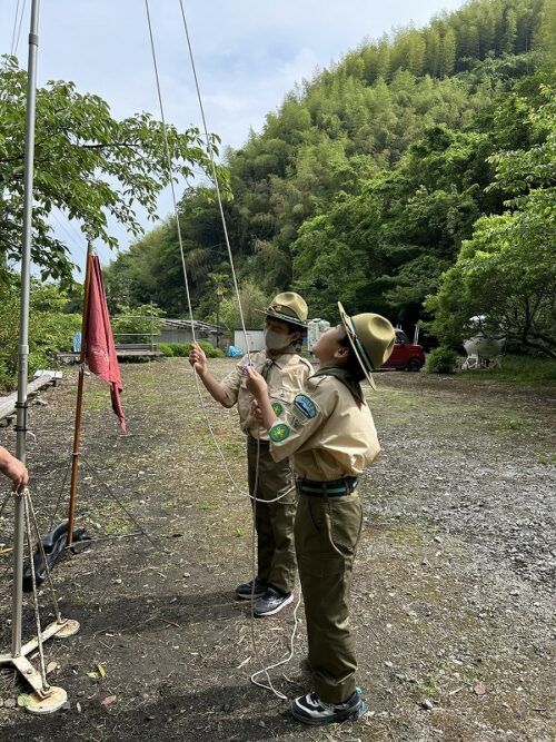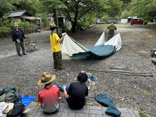ボーイスカウト隊 ディキャンプ スカウト隊 2025.05.182025.11.05 初めてのディキャンプ ボーイ隊の新年度初めての隊集会は、ディキャンプです フライシートを立てて 自分達のテントを立てます 次に昼食作り、ご飯を炊いて お肉を焼いて 皆で食べます 国旗の取り扱いを確認して、掲揚の練習 カブ隊とは違う、集会でした