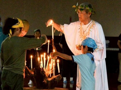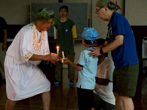 野外での大営火の予定が、キャンドルファイヤーになってしまいましたが、スカウト達は元気いっぱい