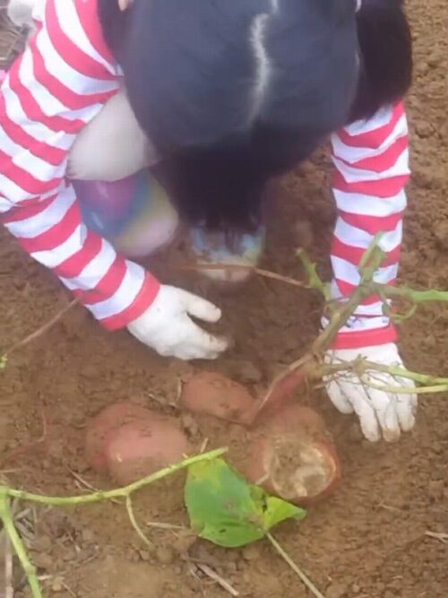 大きなお芋が収穫できて、スカウトの顔は満足そうです