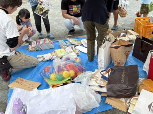 バザーでは、手作り小物各種・保護者提供品、そのほかにコミック・取れたてミカンなどバラエティー豊かな
